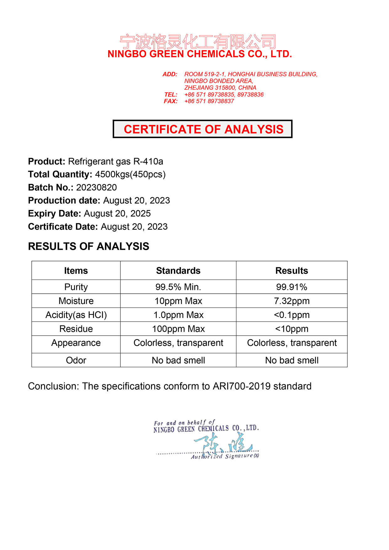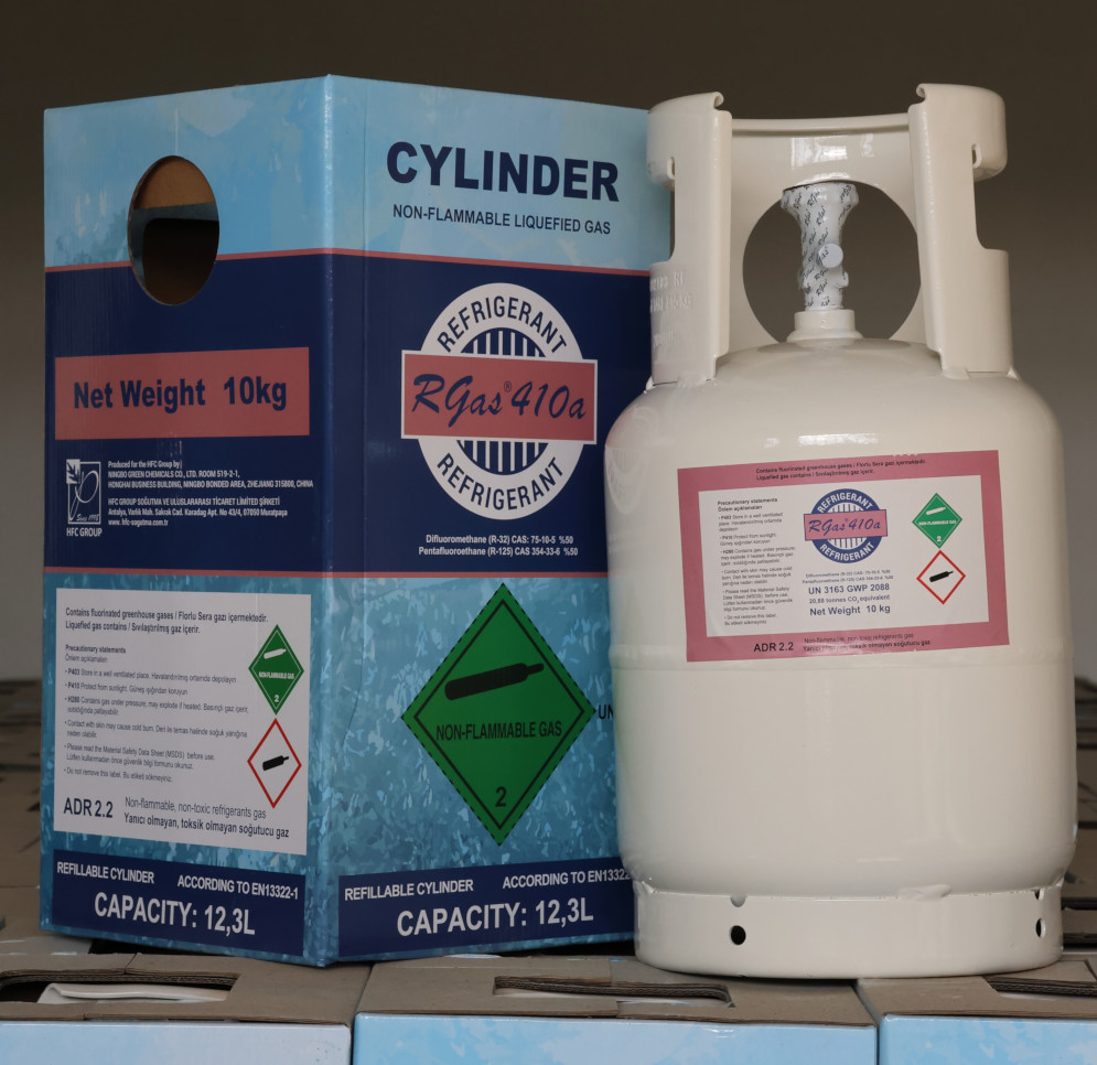İklimlendirme sistemlerinde kullanılır. 10,0 kg'lık silindirde Freon 410a (freon 410a).
